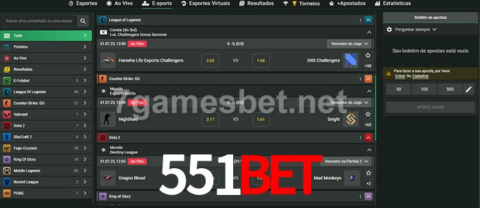 O 551bet oferece uma grande seleção de opções de apostas em e-sports com probabilidades competitivas